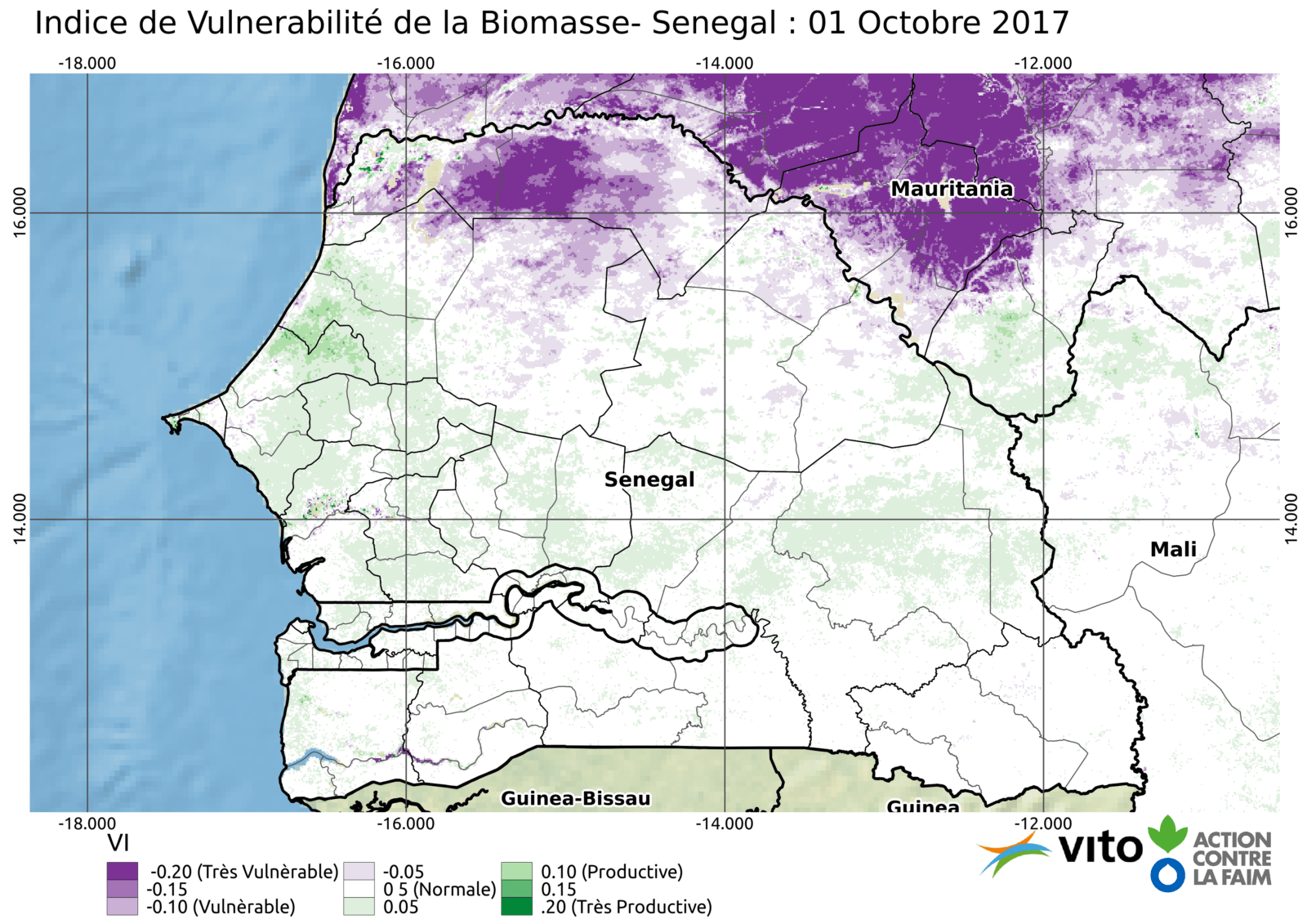 Biomasse Analyse de Biomasse- Senegal 2017 02/10/201725/10/2017Telecharger le rapport (PDF)Les données en Excel et Shapefile sont disponibles sur Humanitarian Data Exchange Indice de Vulnerabilité Senegal 2017 Production Senegal 2017 Anomalie Senegal 2017 Anomalie- Nord Senegal 2017 Production 2017 / Production 2016 en (%) Production 2017 / Production 2011 en (%)