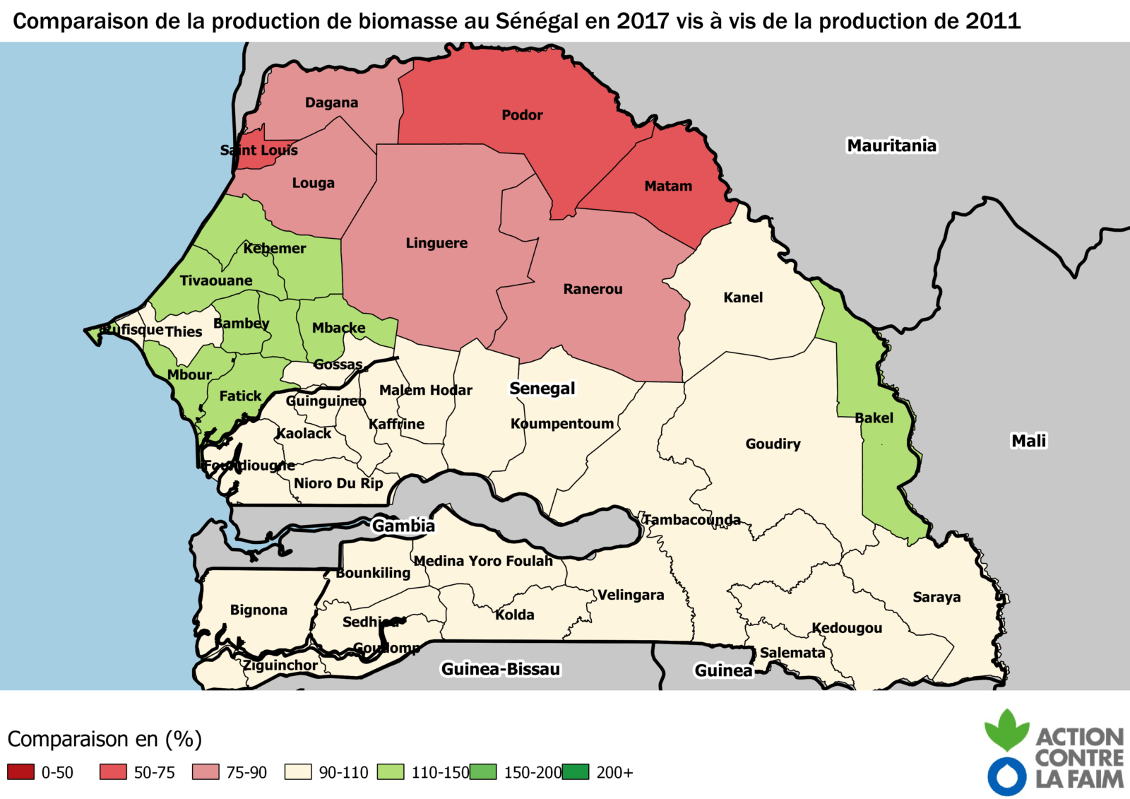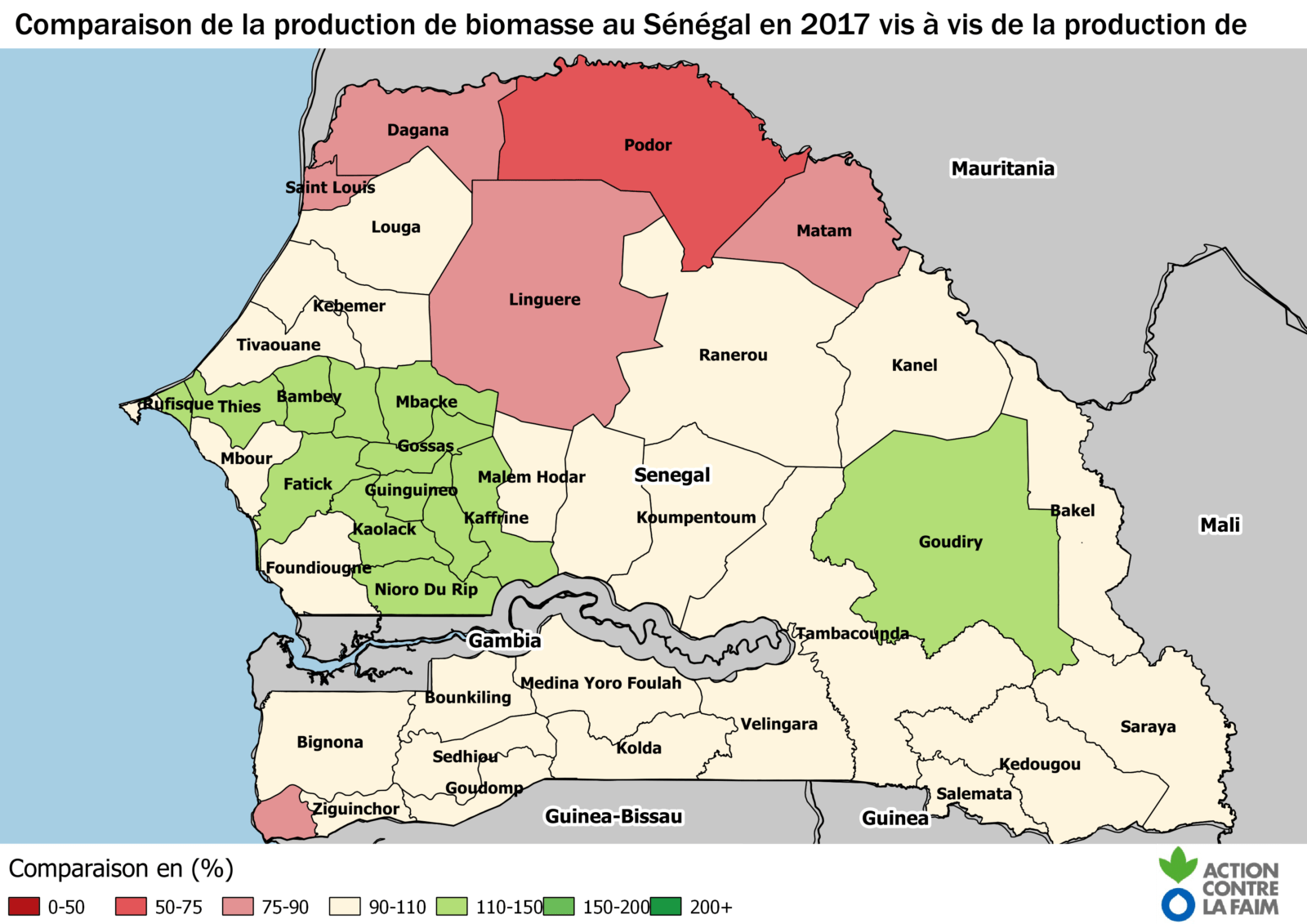 Sénégal ALERTE Nord Senegal Octobre 2017 25/10/2017 FR-Note Alerte Nord Senegal ACF Oct 2017 EN-Warning Alert North Senegal Oct 2017_ActionAgainstHunger Cette note a été préparée d’après les données et analyse de surveillance climatique du bureau régional d’Action Contre la Faim1, les comptes-rendus de réunion et bulletin du GTP de Podor, les informations collectées par les bases d’Action Contre la Faim et ses partenaires RBM et ADENA sur le terrain. Cette note pourrait faire l’objet de mise à jour, d’extension sur d’autres zones y compris transfrontalièresAlors que l’hivernage est presque terminé, le faible niveau de pluie reçu au nord du Sénégal fait craindre une situation difficile dans les mois à venir pour les agriculteurs et les éleveurs. La sécurité alimentaire et nutritionnelle des ménages de Podor, Matam et Louga est à risque et les données comparables à la crise de sécheresse connue en 2011. Après 2011 et 2014, ce serait un 3ème épisode de sécheresse en 6 ans. Fait rarissime.
